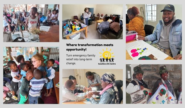 At Sunshine Life Centre, we provide urgent relief to families in the Eastern Cape facing extreme poverty or crises—offering food, clothing, bedding, and essential support. Our team conducts home assessments to understand their needs, and beneficiaries collect their aid parcels from our centre. Beyond emergency relief, we empower them with ongoing mentorship, workshops, and skills training to help them secure jobs, start businesses, or create sustainable income through manufacturing. With your support, we turn relief into long-term change.